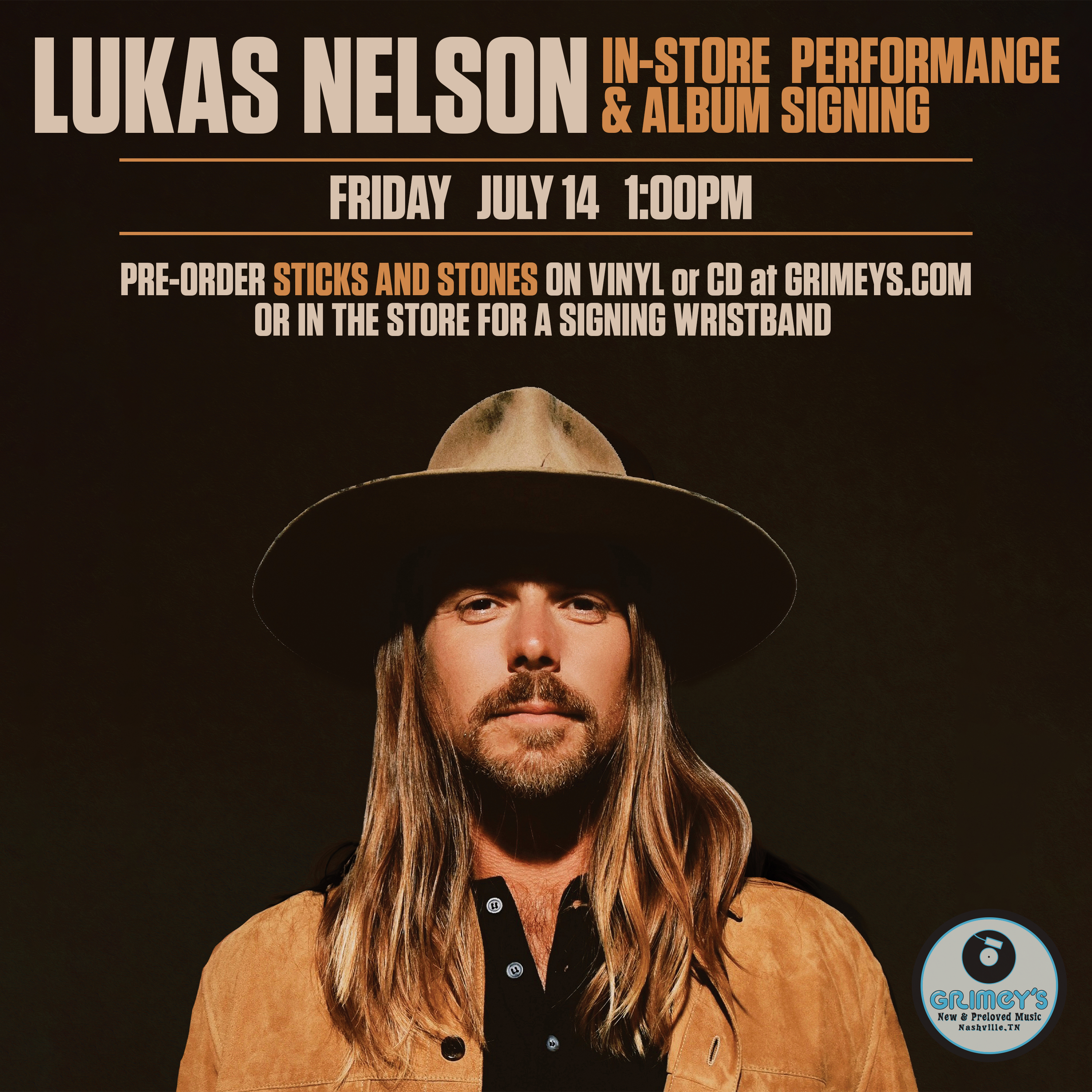 *Please note the new time! for our event.* We hope you can join us for a special in-store performance with Lukas Nelson on Friday, July 14th at 1:00 PM to celebrate the release of his new album, Sticks and Stones. He'’ll be performing a short solo set in the record store for us and after his set, Nelson will be signing records for those in attendance. Customers who preorder the album for local pickup from Grimey’s, via our link here or in the record store, will receive a wristband for Nelson’s album signing. Wristbands are required for the signing, however those 12 and under do not need a wristband if attending with an adult who has a wristband of their own. Space is limited and wristbands guarantee entrance.