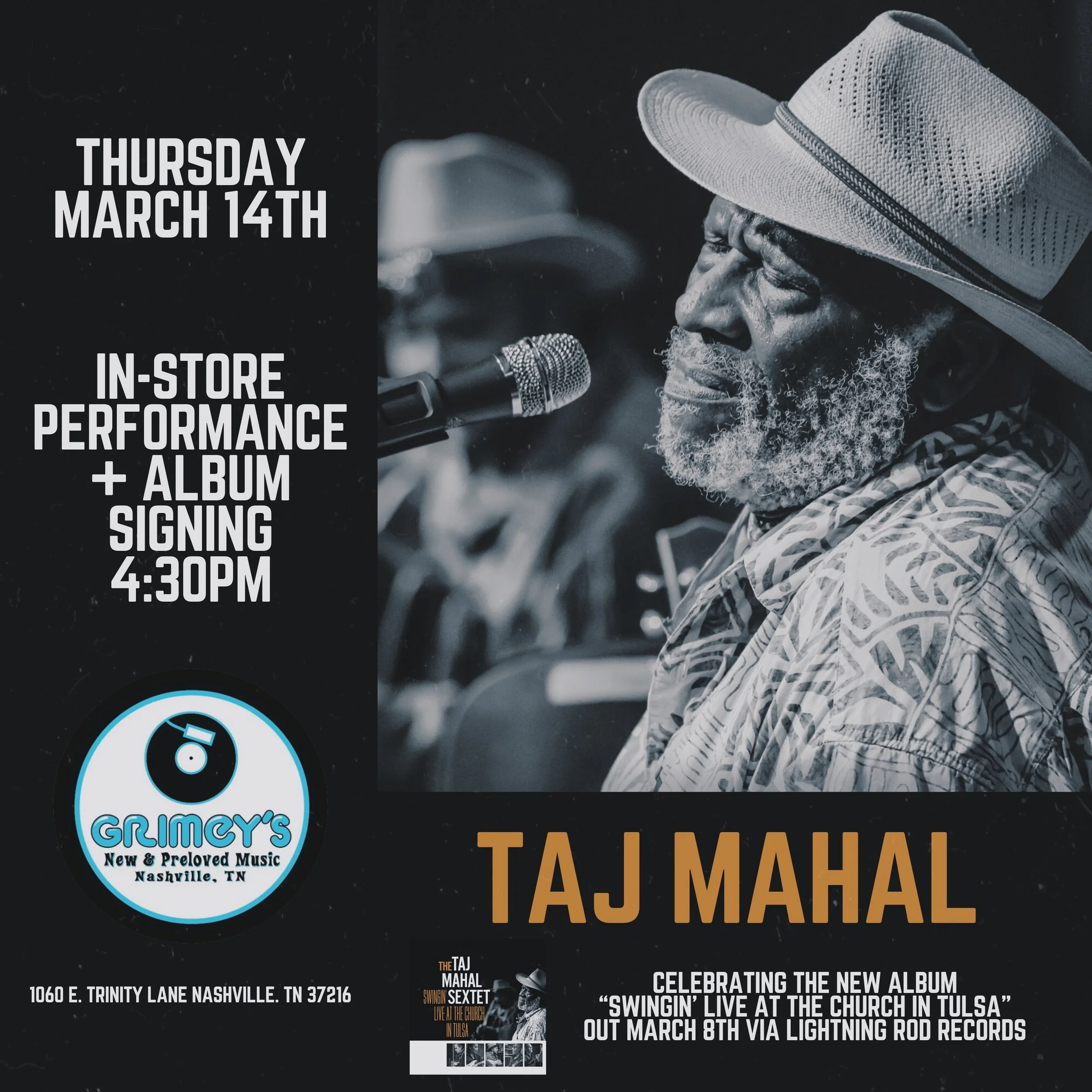 Swinging’ Live at the Church in Tulsa is out this Friday, March 8th. Taj Mahal will join us at Grimey’s (I can't believe I just wrote that!) to celebrate with a live solo performance in the shop next Thursday, March 14th, at 4:30 PM to be followed by a record signing. Taj will only sign copies of his new album. You can order your copy of the gold color vinyl and CD now in the shop or the Grimey’s webstore here for your wristband to go through the signing line and get Taj Mahal to autograph your album! Attendance for this event is free and all ages.